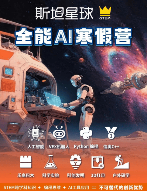目前斯坦星球寒假AI科技营开营在即(2026年2月,详情咨询各中心),目前剩余名额已经不多,还没有为孩子规划寒假的家长们一定要抓住最后机会啦!