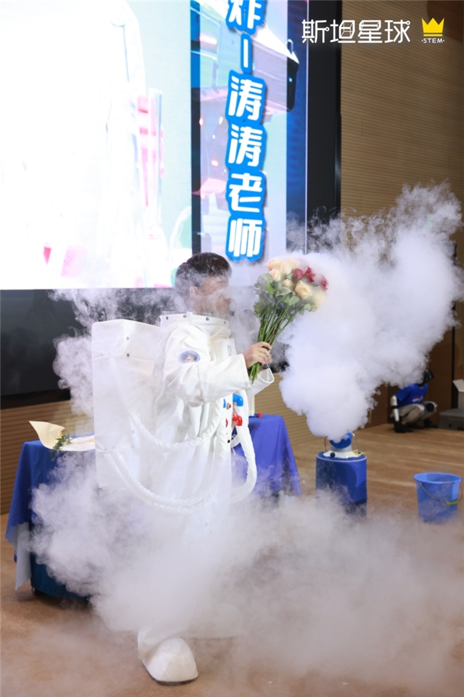 发布会现场,斯坦星球带来“火焰掌”“液氮爆炸”等震撼科学秀。当老师手掌燃起火焰却毫发无损,当液氮爆发腾起巨大白色烟雾,孩子们的惊叹声此起彼伏。