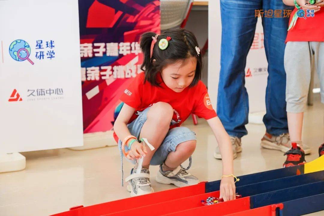 接下来,便是孩子们的四驱车竞速挑战赛了,他们拿着和爸爸妈妈共同制作四驱车进行竞速PK,比赛现场尖叫声、欢呼声不断,热情十分高涨!
