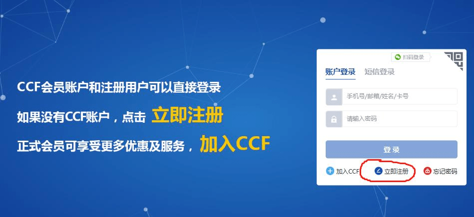 先注册再报名,没有CCF(中国计算机学会)账号的同学需要先登录CCF官网进行账号注册: