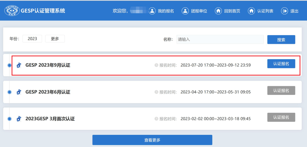 注意相关的认证时间,和打印准考证的时间(这里以2023年9月认证为例)