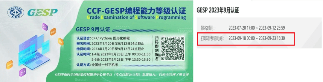 本次GESP认证时间为9月23日,报名截止到9月12日,请大家及时完成报名,报名成功以缴费成功为准。
