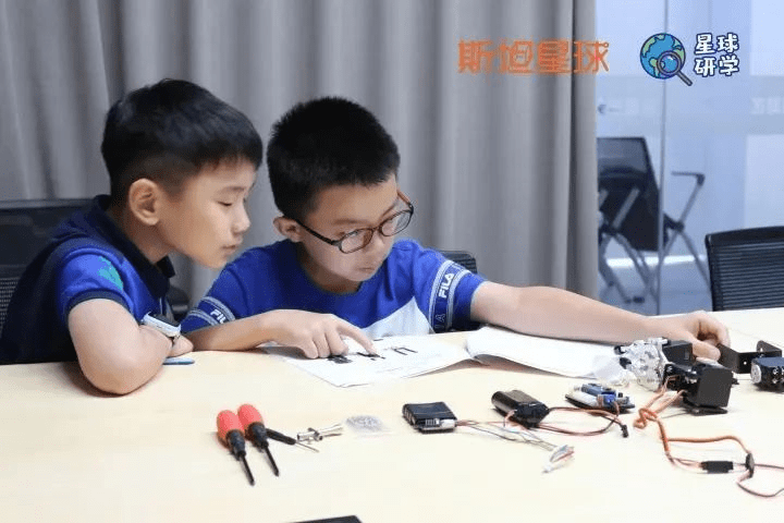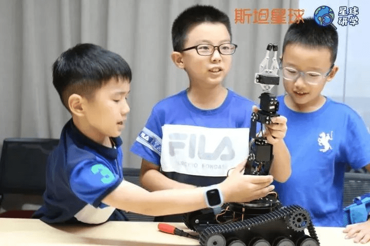 这节课带领营员,走进浙江大学国家大学科技园,老师结合常规课程部分,讲解视觉识别智能履带车的基本结构和运行原理、带领学生建立对机器人工程的整体认识;学生动手实践,学生亲手组装履带车,并进行履带车智能抓取大赛,体验操控的乐趣。