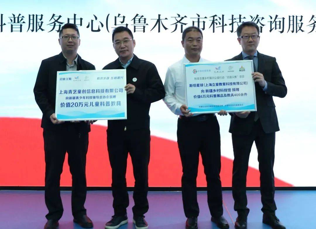斯坦星球携手青艺童创向新疆青少年科技辅导员协会和新疆乡村科技馆分别捐赠了价值6万元和20万元科普教玩具,同时还配套了对应课程,希望能激发孩子们对科学探究的浓厚兴趣,努力以科技创新引领乡村振兴。