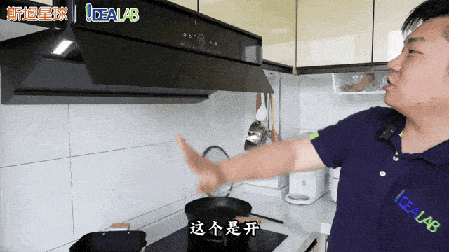 但大卫老师家的抽油烟机可以实现无接触式开关,手一挥就可以完成设备的启动和关闭。