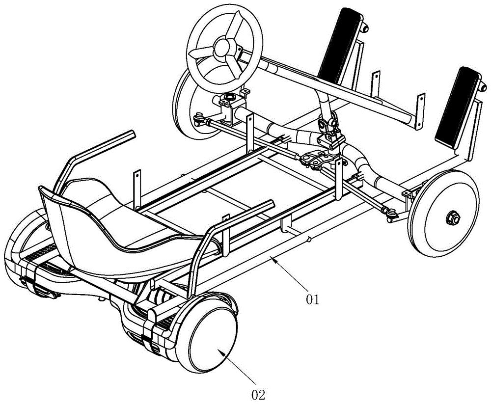 车体后前桥采用独立悬挂系统,方向盘采用万向节辅助球头多连杆转向来控制车体前进方向。帮助车体能在复杂路段能有良好的减震性能。