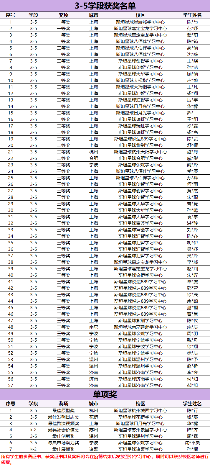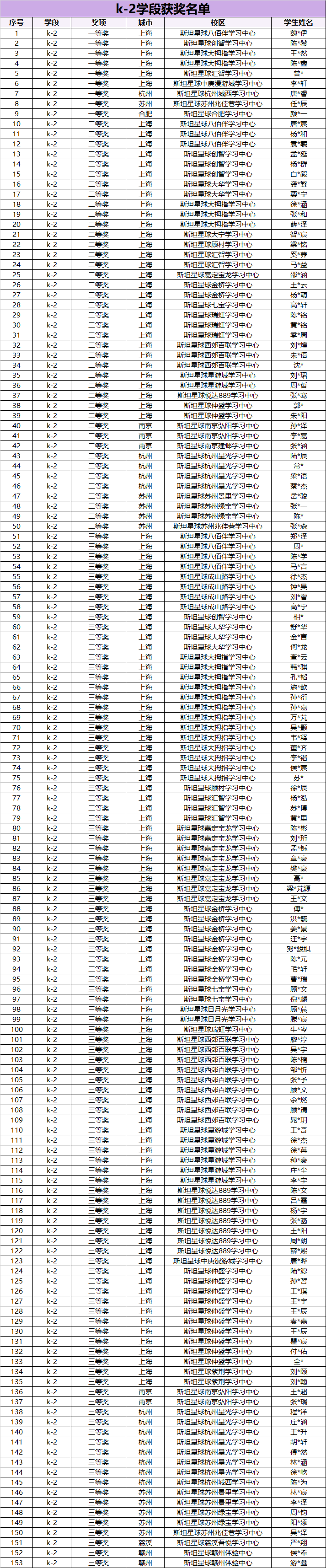 此次活动的奖项分为k-2学段以及3-5学段进行评审。其中一等奖占总参赛人数的前5%,二等奖占30%,三等奖占50%。