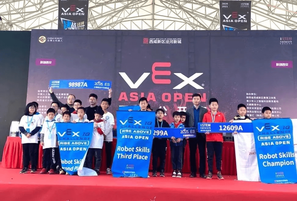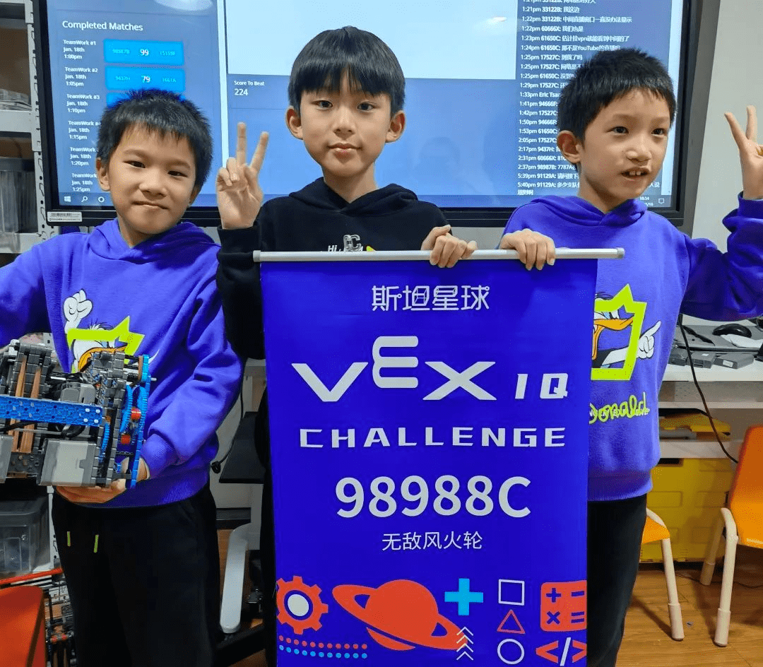 跟着大哥哥们一起到西安参加了一场线下比赛后,一开始只是抱着增加参赛体验的几个小家伙取得了几只队伍里最高的排名,对于机器人有了更多理解,也对 VEX 产生了强烈的兴趣。