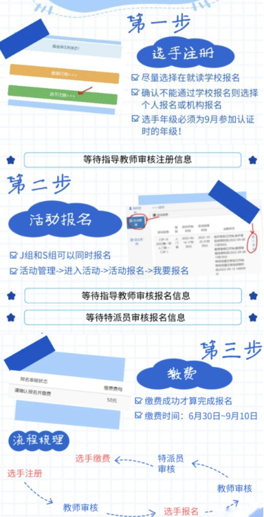 1. 注册与报名 :所有参赛者需先注册账号,再进行报名。若学籍所在学校无特殊要求,可选择斯坦星球报名(区域选择“杨浦区”,学校选择“斯坦星球”,指导教师“赵晨泽”)。