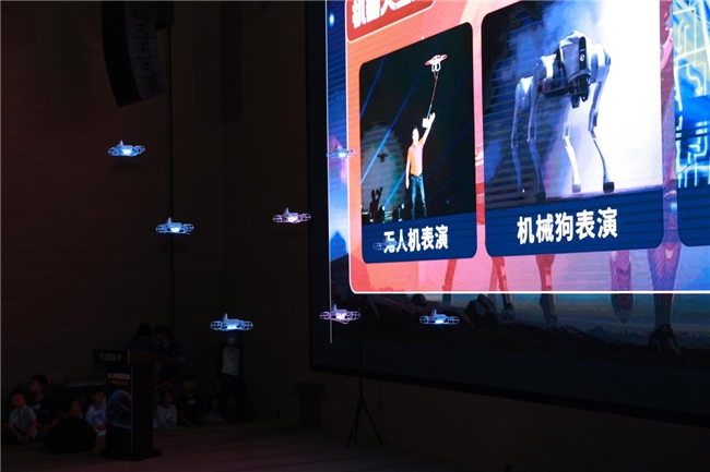 人形机器人优雅起舞、机器狗灵活穿梭、无人机腾空展演,构建出极具冲击力的科技场景。