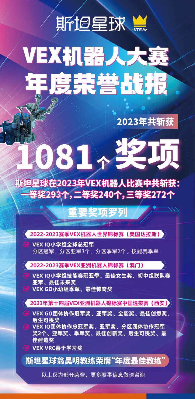 仅2023年小斯坦星人就斩获了3500+个重磅奖项,这样优异的成绩不仅是对学员实力的肯定,也是对斯坦星球教学质量的证明!