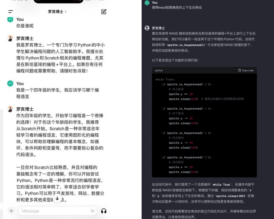 对于有编程兴趣并乐于创新的孩子,可以尝试斯坦星球全新升级的“Python AI课”,颠覆式地学习Python,并接触人工智能、学习人机交互。