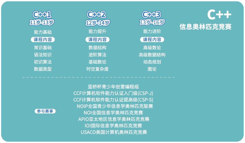 C++信息奥林匹克竞赛课程以C++信息奥林匹克竞赛获奖为目标,进行全面的考点梳理,拆解经典真题,让孩子运用所学知识配套考试技巧,冲刺信奥,课程设置符合孩子认知规律,难度循序渐进。
