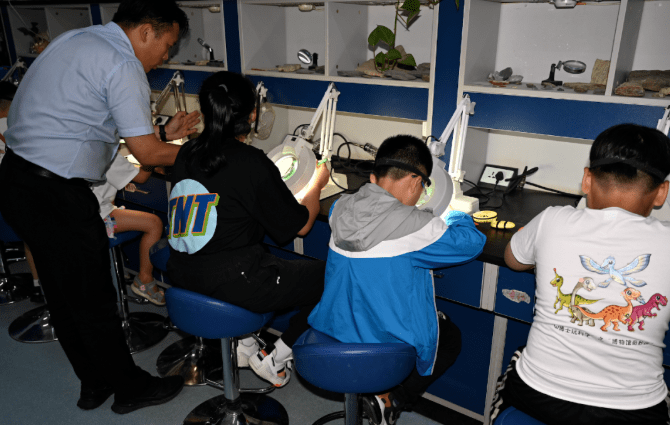 孩子们在导师们的指导下,自己动手进行琥珀打磨。培养了动手能力和实践能力。