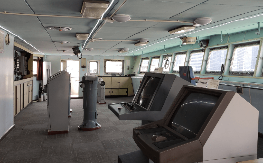 驾驶室是船舶的指挥中心,远望1号驾驶室保留了许多船舶驾驶时所需的设备,“左满舵”、“右满舵”、“全速前进”等熟悉的指令便是从这里发出的。