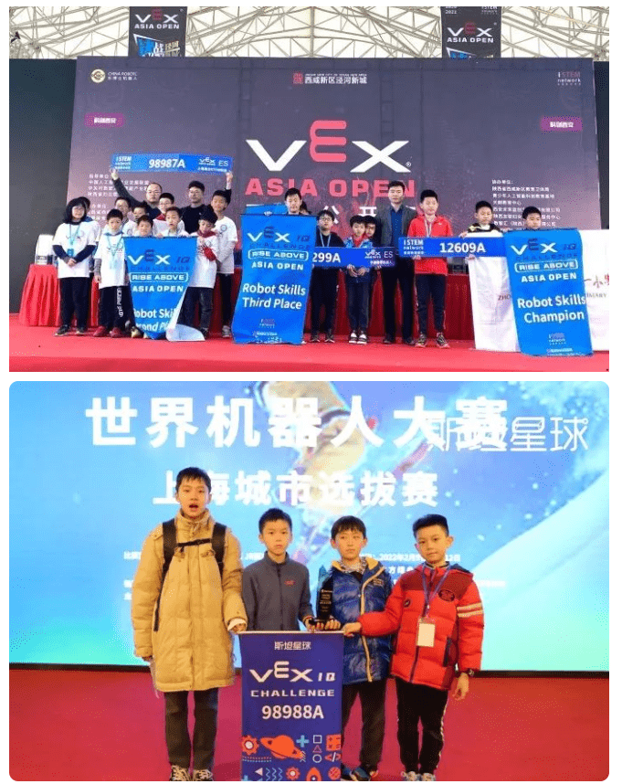 第十四届VEX亚洲机器人锦标赛:小学组2个冠军、1个亚军、4个一等奖;初中组1个冠军、1个一等奖