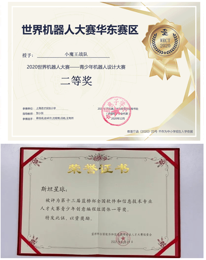 上海市第37届青少年科技创新大赛:1位学员获得上海市一等奖&2项专项奖;1位学员获得上海市二等奖&2项专项奖;8位学员取得上海市三等奖