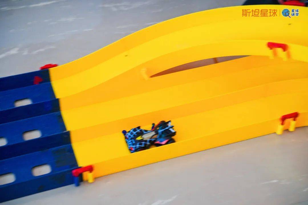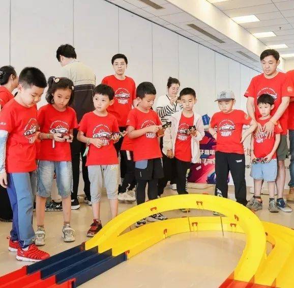 接下来,便是孩子们的四驱车竞速挑战赛了,他们拿着和爸爸妈妈共同制作四驱车进行竞速PK,比赛现场尖叫声、欢呼声不断,热情十分高涨!