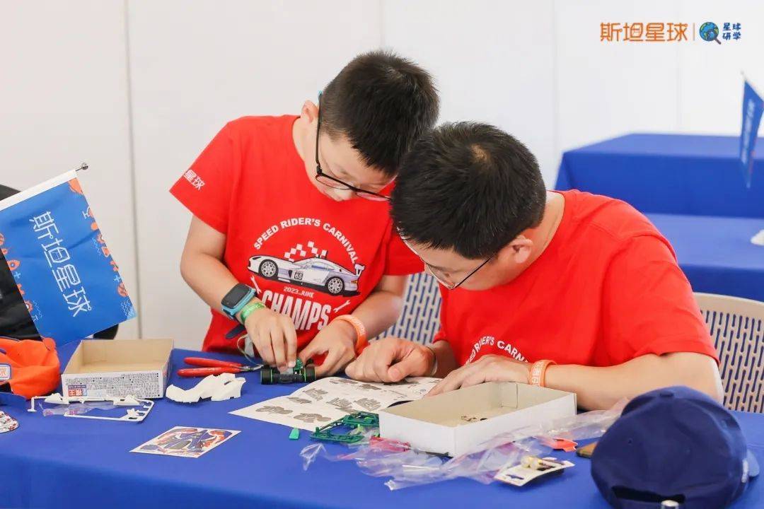 这次活动在老师的指导下,家长和孩子们一起动手制作了专属自己的四驱车。