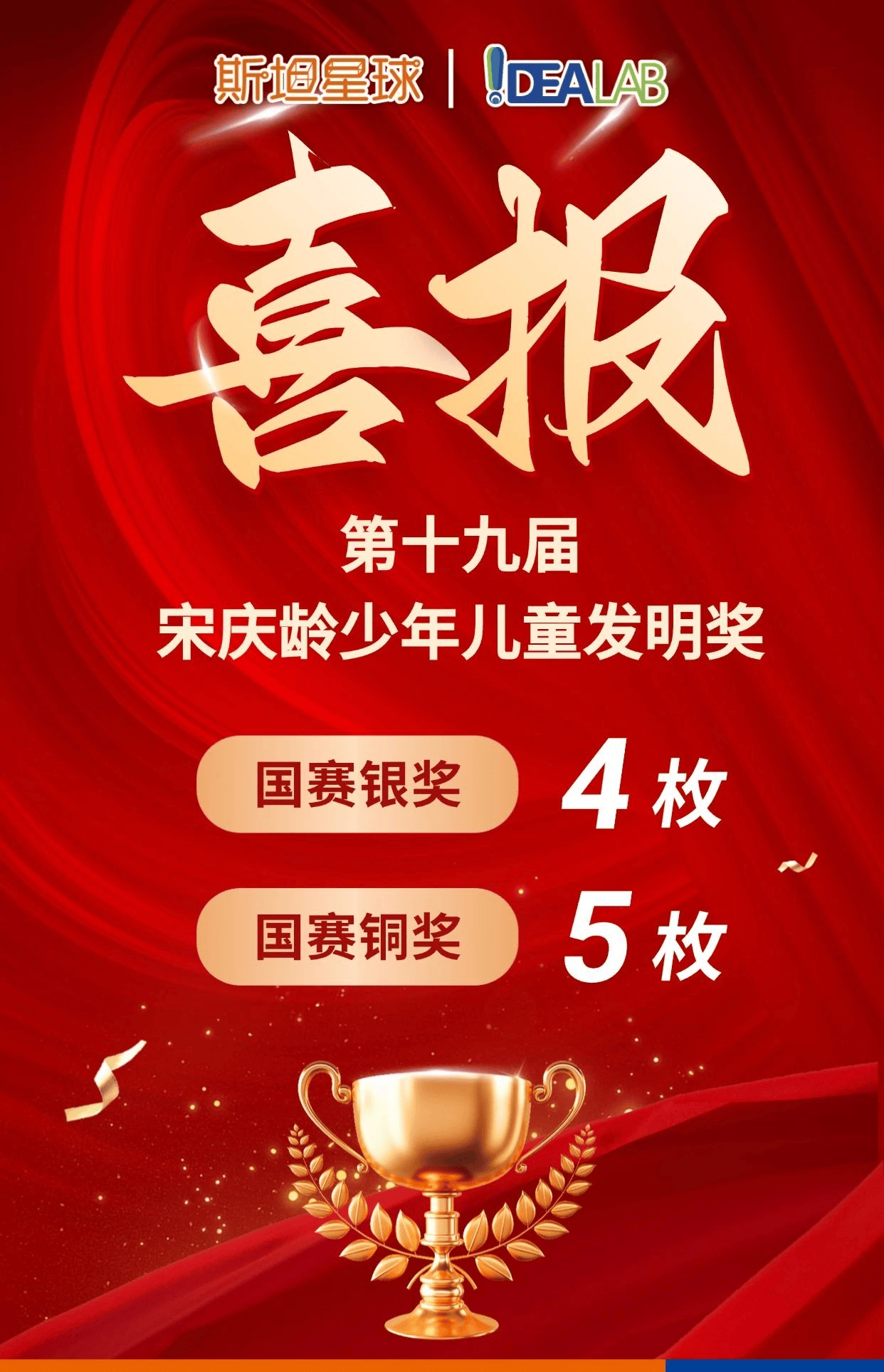 在刚刚落幕的第19届宋庆龄少年儿童发明奖全国总决赛中,斯坦星球ideaLab的小发明家们学子再次展现了卓越的创新能力和拼搏精神,一共有来自4个省份的学员豪夺9枚国赛奖项!