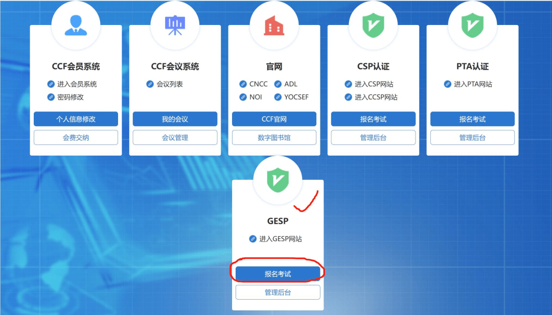 登录CCF官网,选择GESP的报名考试,报名网址如下: