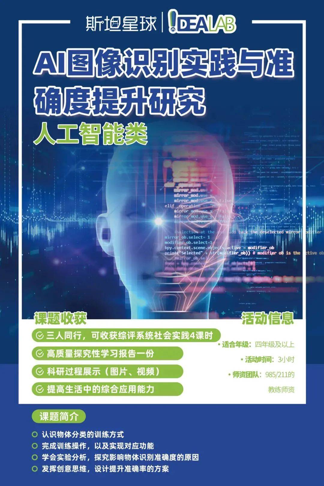暑假期间,完成斯坦星球青少年科创实践基地探究项目,不仅可以获得有质量的探究性学习报告的同时,还能积累必要的社会实践课时。