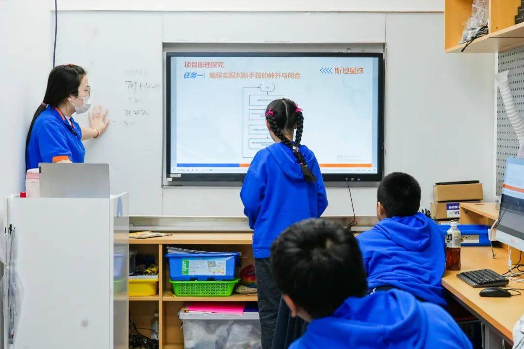 因为孩子们写的代码会很直观地显现在控制的硬件上,为了让硬件呈现最终的效果,他们听课时都更加投入,学知识时也更加认真和严谨。