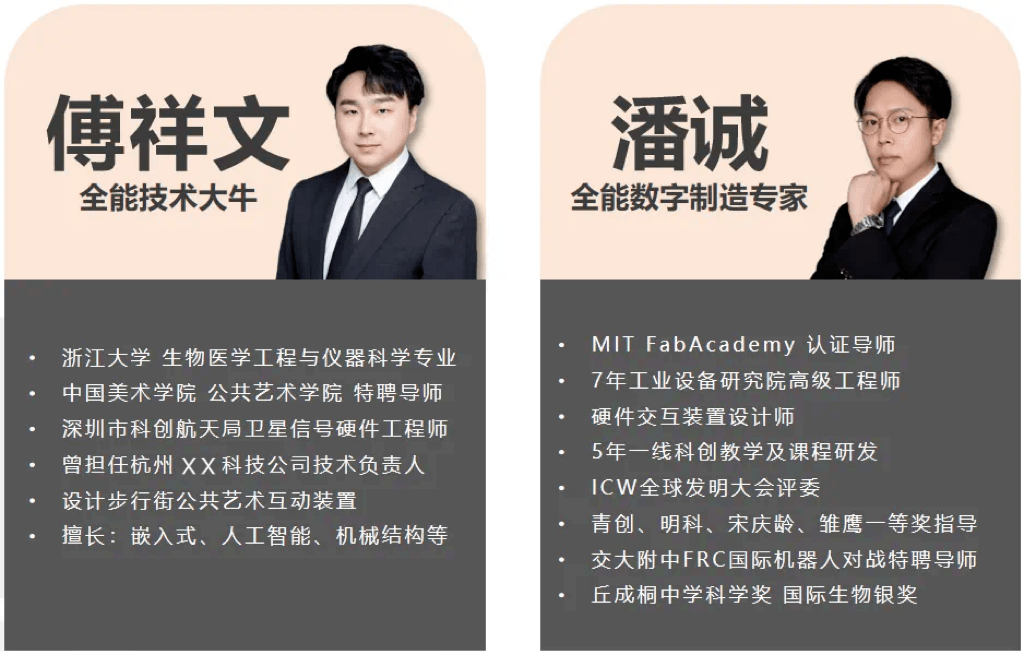 潘诚老师是MIT Fab Academy的认证导师,7年工业设备研究院高级工程师经验,让潘老师对各种硬件设备如数家珍!