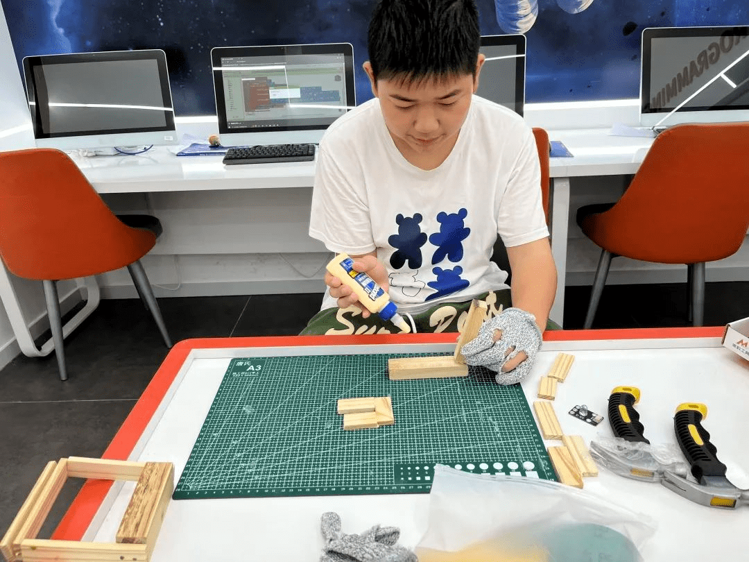 这节课孩子们需要自己动手完成了创意小发明,从基础的创意idea到图纸绘制到动手打磨组装,看来孩子们已经将机械工程、电子电路、编程运算等多元知识运用得炉火纯青了~